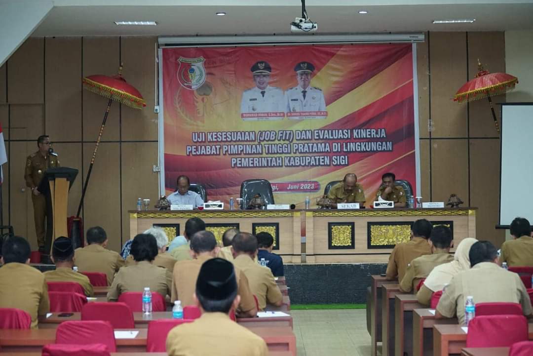 Bisalanews-id- bertempat di Hotel Jazz Wakil Bupati Sigi Dr. Samuel Yansen Pongi, SE., M.Si di dampingi Sekretaris Daerah Kabupaten Sigi menghadiri Rencana Evaluasi Kinerja dan Uji Kompentensi PPT (Pejabat Pimpinan Tinggi) Pratama dalam Rangka Mutasi/Rotasi di Lingkungan Pemerintah Kabupaten Sigi Tahun 2023.Wakil Bupati Sigi dalam sambutannya menyampaikan bahwa, hadirin peserta Job Fit ini adalah tokoh-tokoh penting pemegang kendali kinerja yang menentukan kesuksesan dalam perjalanan pemerintahan di Kabupaten Sigi.