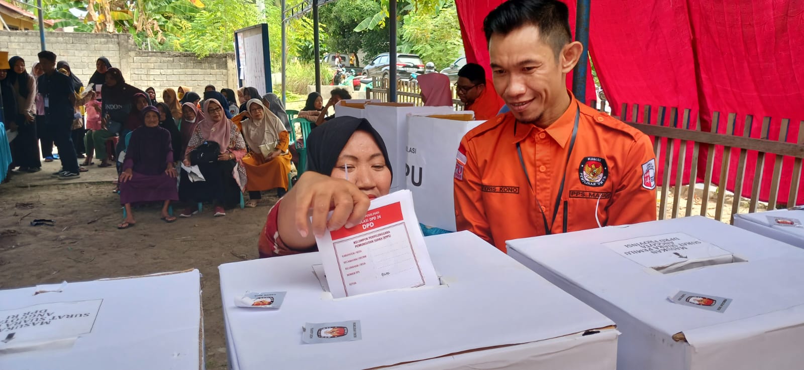 Simulasi digelar di TPS II Desa Pembalowo, Kecamatan Parigi, dengan TPS real sebenarnya. Kamis (21/12/2023).