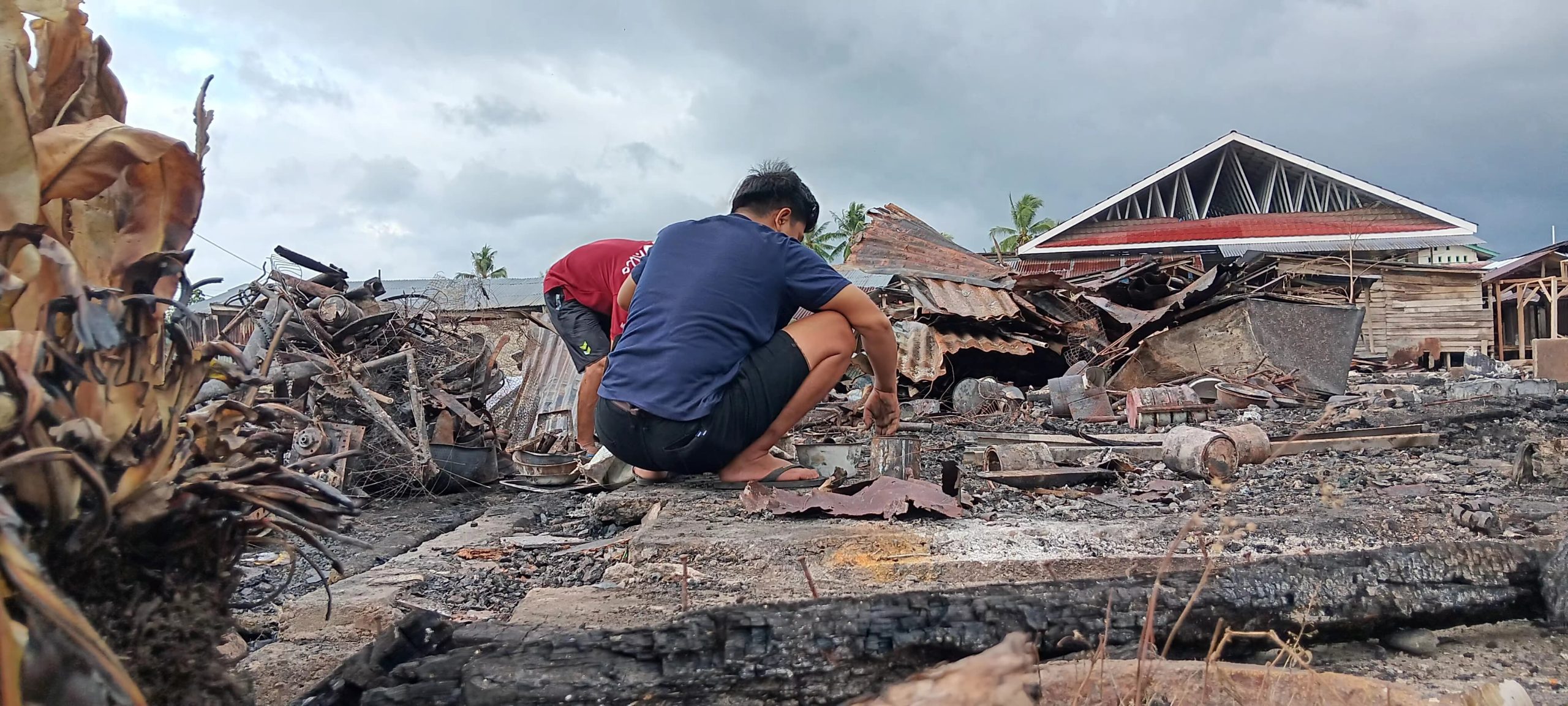 Beberapa warga yang terlihat membersihkan puing – puing sisa kebakaran pasar sausu