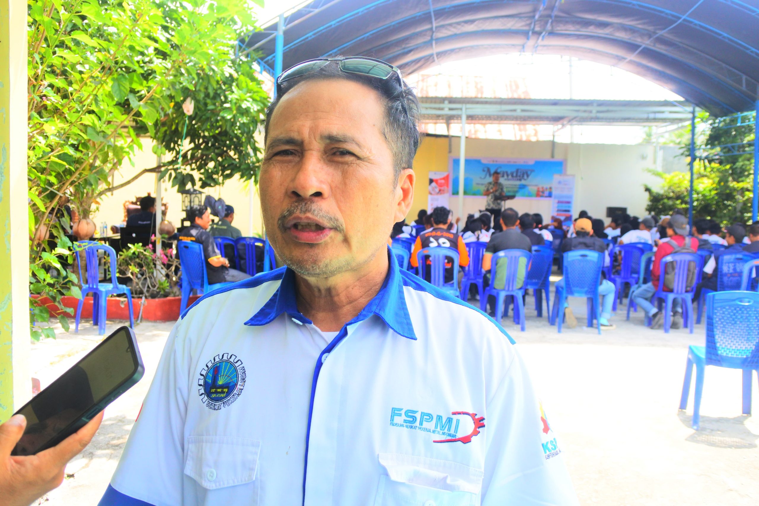 Ketua Dewan Perwakilan Daerah Federasi Serikat Pekerja Metal Indonesia (DPD FSPMI) Provinsi Sulawesi Tengah, Lukius Todama saat di temui di Desa Pelawa, Kecamatan Parigi Tengah, Kamis, (01/05/ 2025).Foto.MR