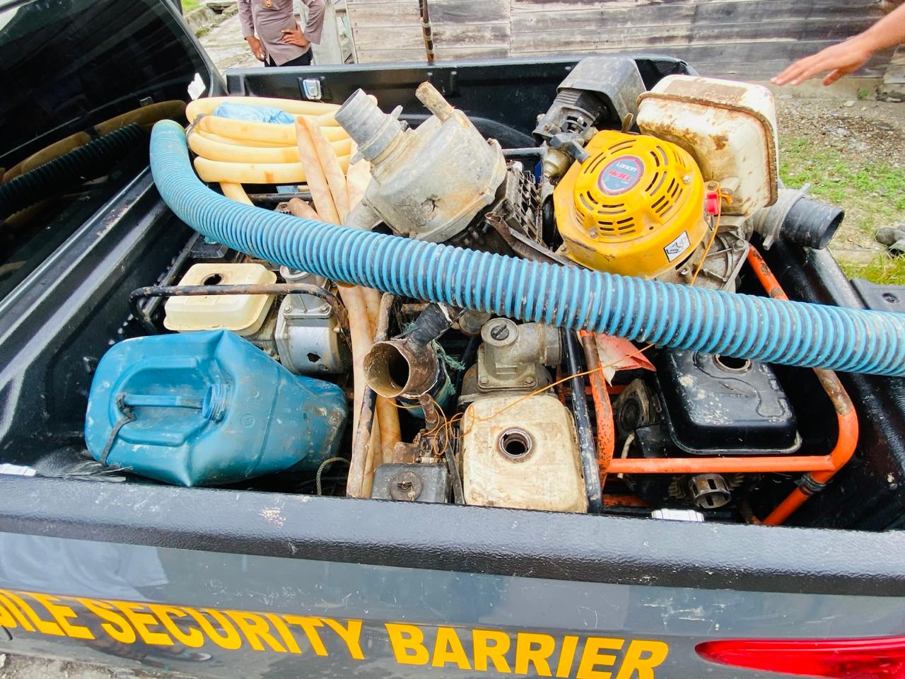 Dalam operasi tersebut, aparat berhasil mengamankan delapan unit mesin alkon yang digunakan untuk kegiatan tambang ilegal.