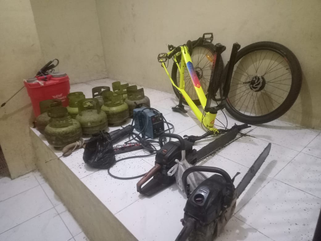 Dari hasil penyelidikan, polisi menyita sejumlah barang bukti hasil kejahatan, di antaranya delapan tabung gas elpiji 3 kilogram, satu unit mesin las, satu mesin semprot, dua unit chainsaw, satu sepeda gunung merek Trill, satu set kunci pas, serta dua bilah parang.