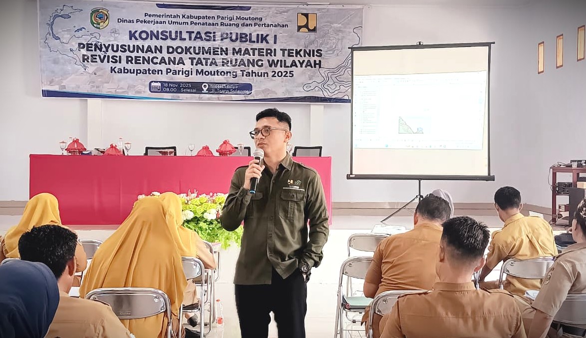 Kepala Bidang Tata Ruang Dinas PUPRP Parigi Moutong, Ade Prasetyo Tagunu, menjelaskan bahwa agenda ini merupakan konsultasi publik pertama yang memaparkan seluruh peta rencana kepada para pemangku kepentingan.