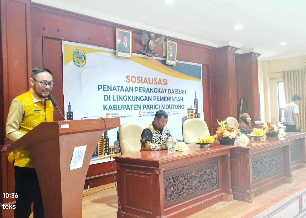 Bisalanews.id, Parmout – Pemerintah Kabupaten Parigi Moutong terus memperkuat komitmennya dalam meningkatkan kualitas tata kelola pemerintahan melalui kegiatan Sosialisasi Penataan Perangkat Daerah yang digelar di ruang rapat lantai 2 Kantor Bupati Parimo, Kamis (20/10).