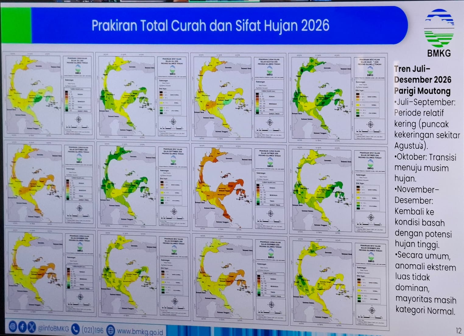 Rekomendasi BMKG tersebut diharapkan dapat menjadi acuan bagi Pemerintah Daerah Parigi Moutong dalam menyusun langkah mitigasi dan kesiapsiagaan lintas sektor, baik dalam penanggulangan bencana, penguatan ketahanan pangan, maupun pengelolaan sumber daya air secara berkelanjutan.