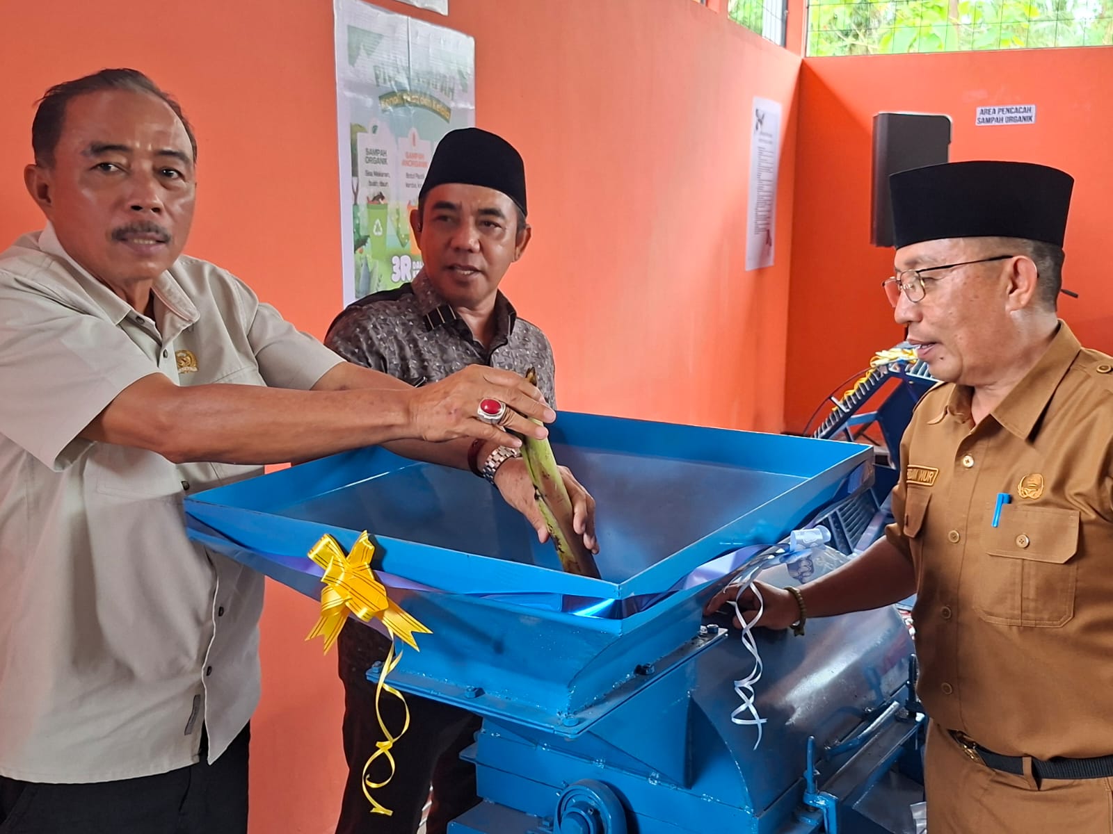 Asisten 1 Bidang Pemerintahan dan Kesra Sekretariat Daerah Kabupaten Parigi Moutong, Adrudin Nur dan Ketua DPRD Parigi Moutong, Alfres M.Tonggiroh di dampingi Ketua Fraksi Gerindra, Faisan Lelo Badja lakukan simulasi pencacah sampah. Senin,(23/02/2026) – Foto : MR.Pakaya