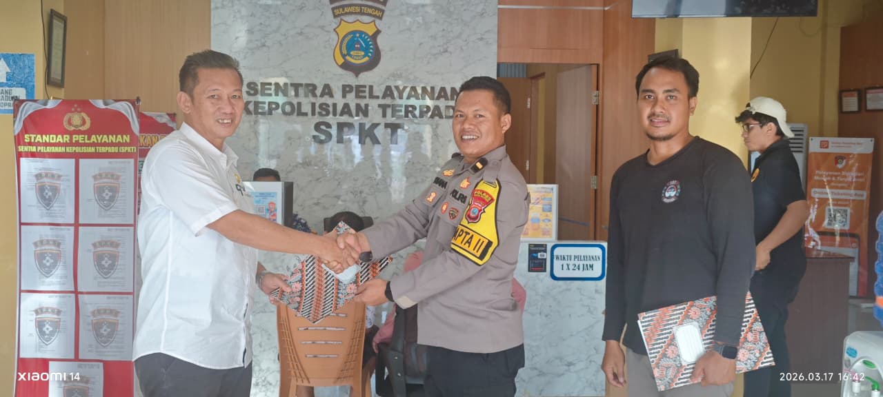 Anggota DPRD dari fraksi Hanura, Yushar saat serah terima hasil laporan polisi di Polres Parigi Moutong. Selasa (17/03/2026). Foto : MRP
