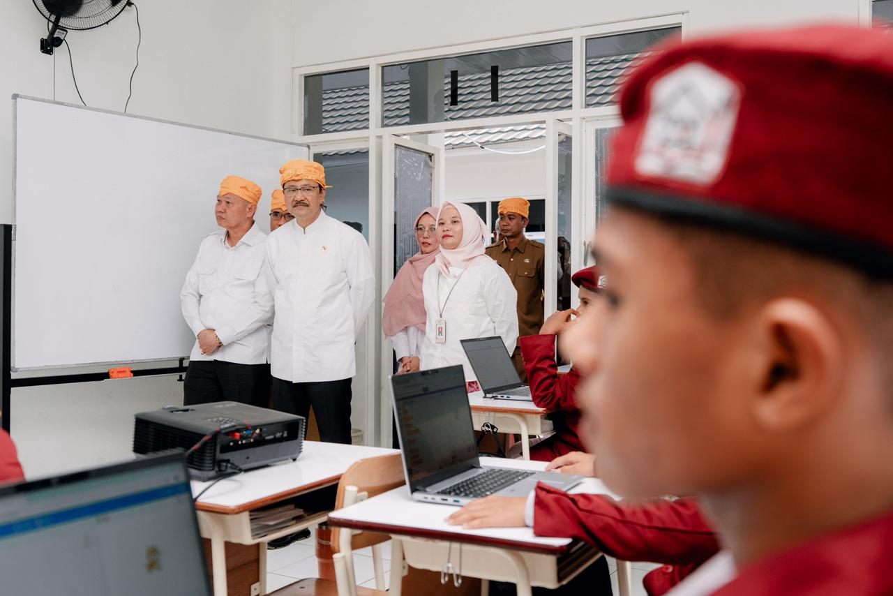 Setelah penyambutan, Gus Ipul meninjau langsung proses pembelajaran di dalam kelas. Ia melihat para siswa tampak antusias menggunakan laptop sebagai sarana belajar, dengan pendampingan guru yang dinilainya penuh dedikasi.